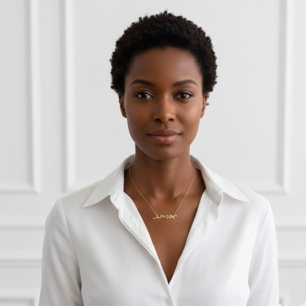 Show your bold side with the Big Mama Script Necklace. Featuring a striking script design that spells out “Mama” in elegant, flowing letters, this necklace captures both strength and style. It’s a statement of love, pride, and sophistication — perfect for the modern, confident woman.