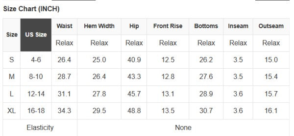 • XL: (Waist), (Hips), (Inseam), (Length)