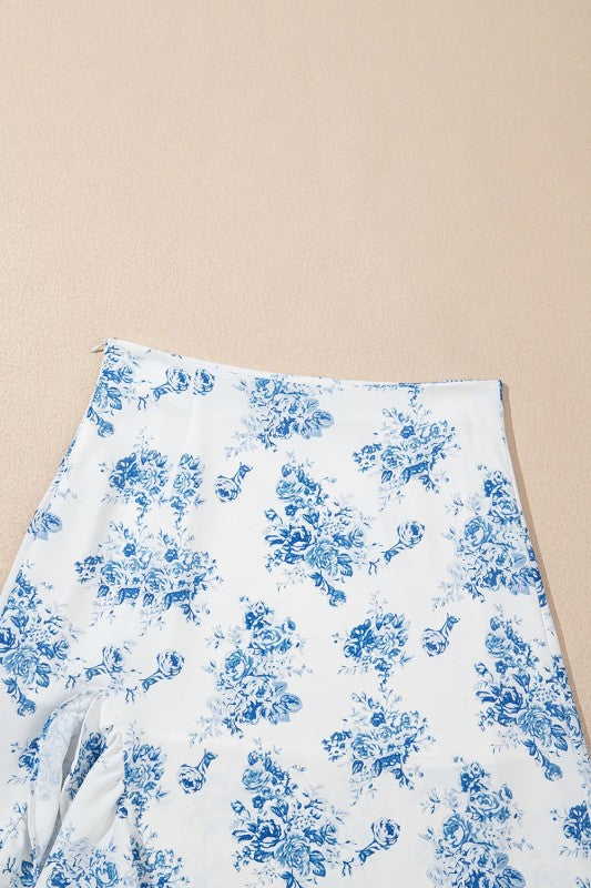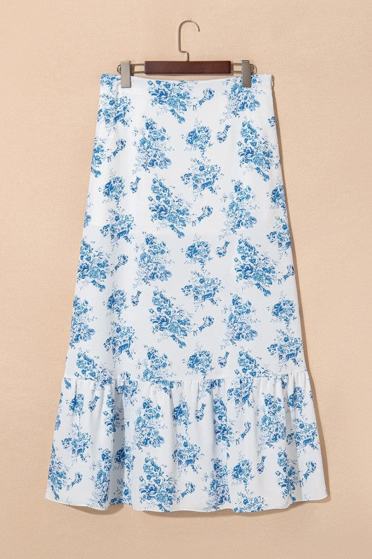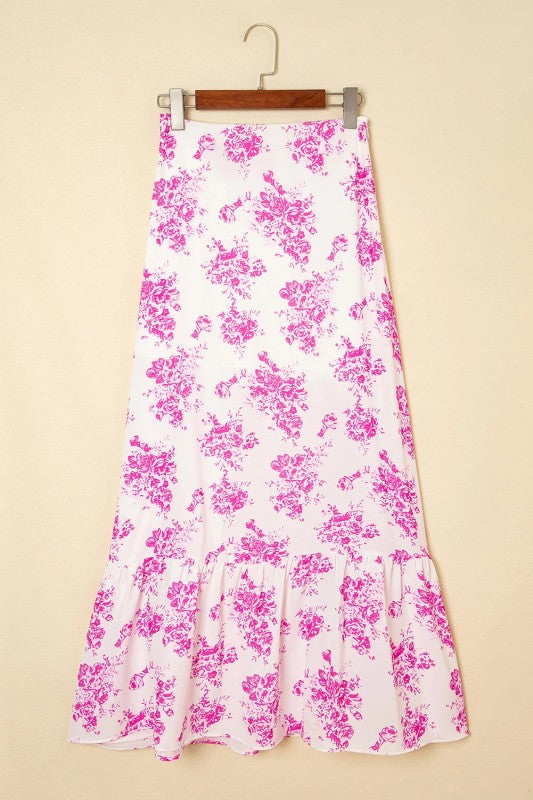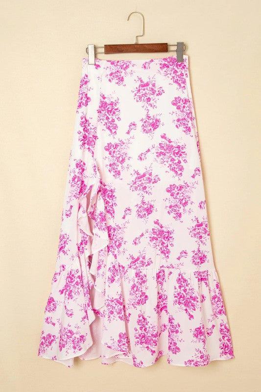 Twirl into summer in this boho beauty! Featuring an enchanting floral pattern and flattering high waist, this maxi skirt brings effortless elegance to your wardrobe. The playful side split with ruffled edges adds just the right amount of sass and movement. Slip it on and pair with your favorite tee or tank for an instant breezy vibe that works from brunch to sunset strolls. 100% Polyester