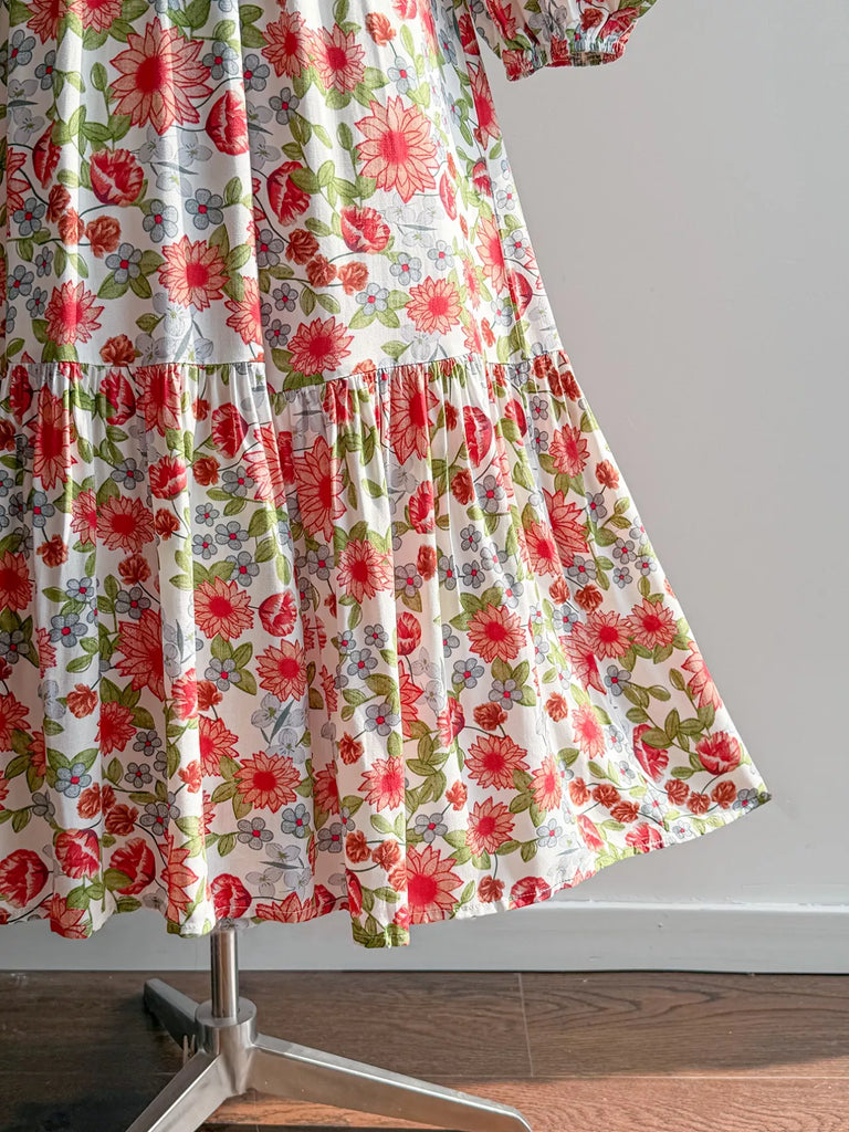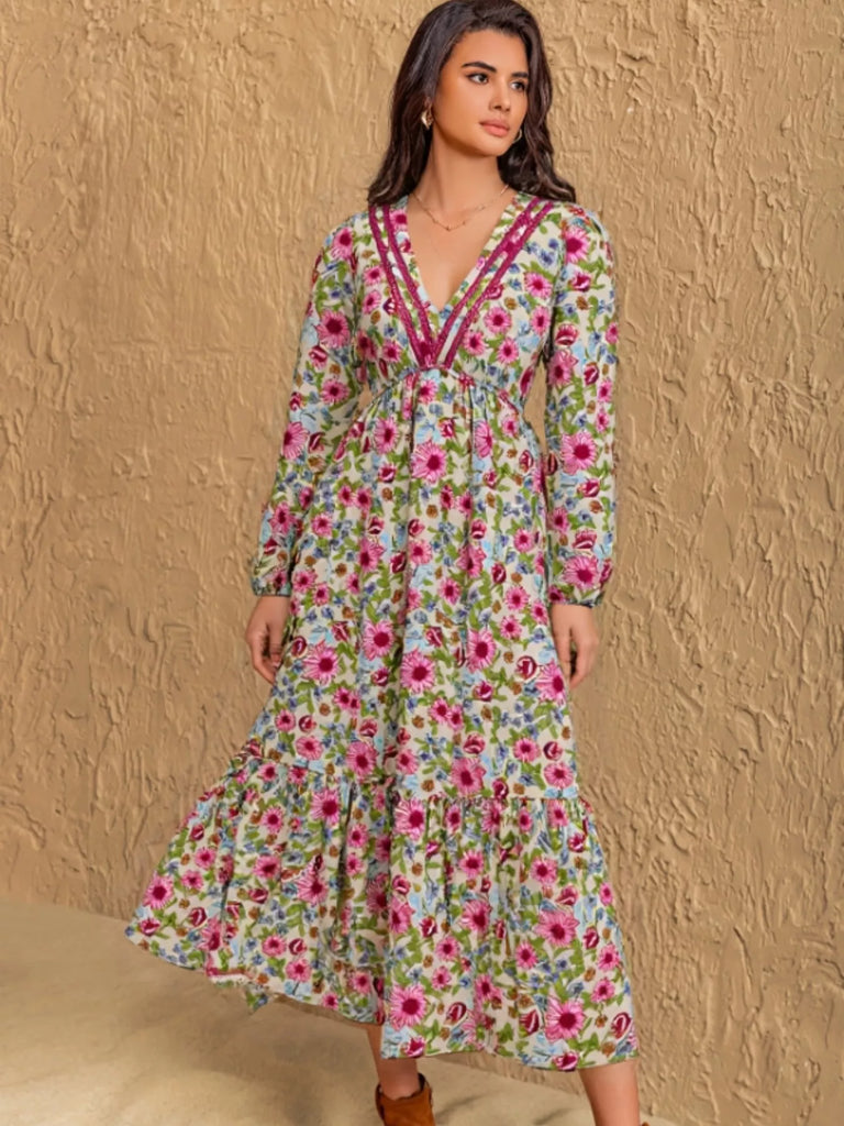 Floral Print V-Neck Bohemian Midi Dress