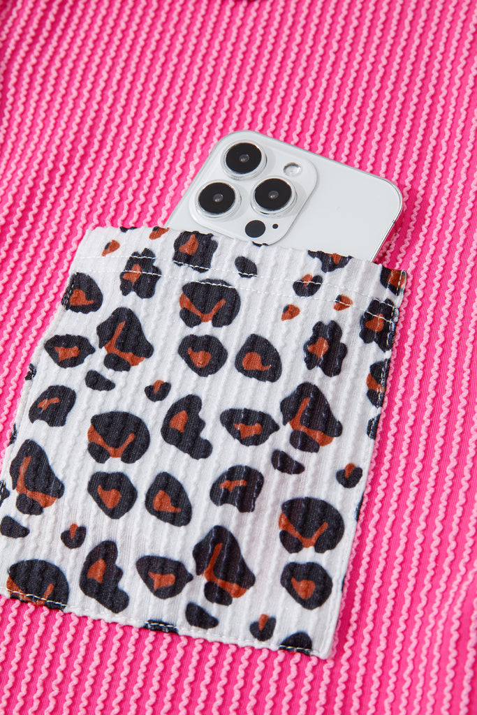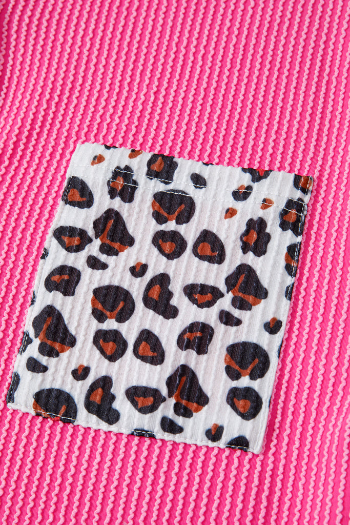 Rose Red Leopard Patched Twisted Ribbed Western Casual Shacket