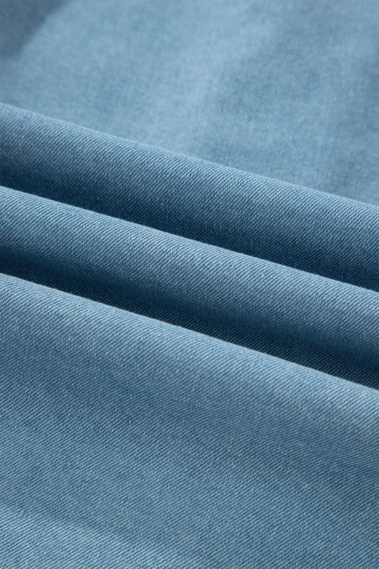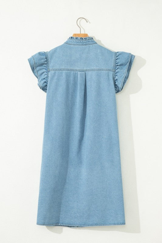 Solid Denim Ruffle Sleeve Buttoned Mini Dress