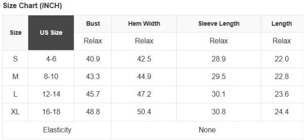 See size chart for approximate measurements