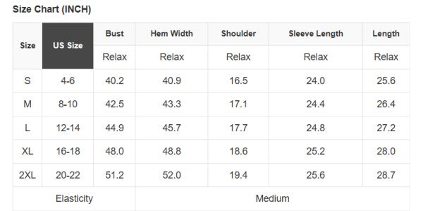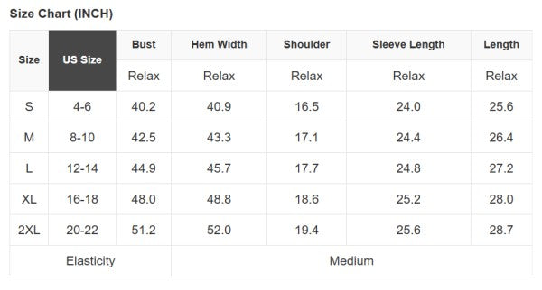 Size Info: See size chart for approximate measurements