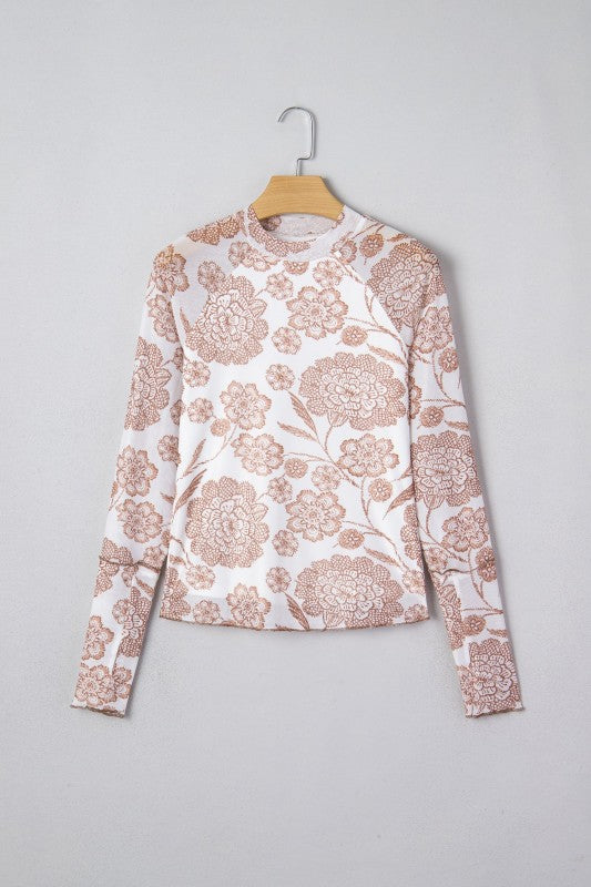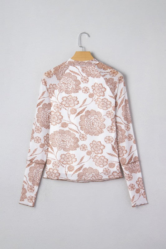 Floral Mesh Thumbhole Long Sleeve Top