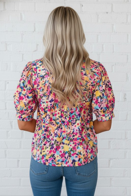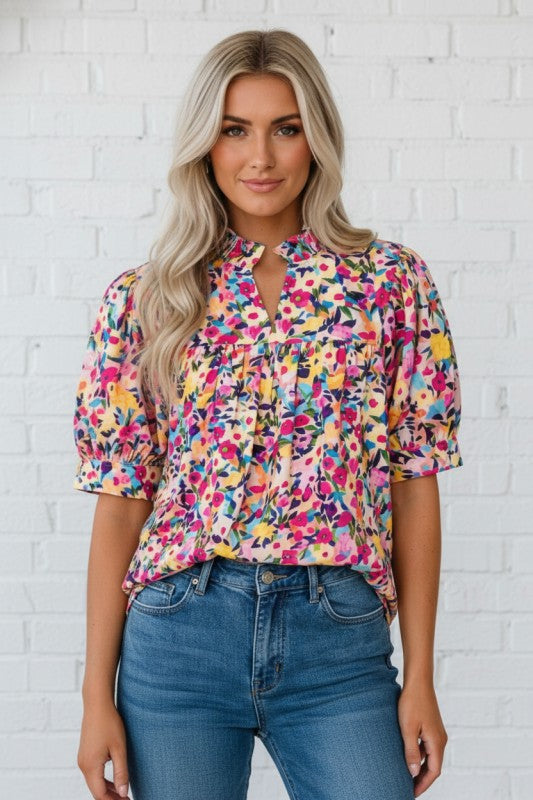 Bloom into summer style with this charming floral blouse! Delicate flower prints bring a fresh, garden-inspired vibe to your warm-weather wardrobe. The frilled collar frames your neckline with sweet femininity, while short puff sleeves add a playful touch of volume and whimsy. Crafted from lightweight, breathable fabric, it's perfect for staying cool and comfortable all season long. Whether you're heading to brunch or a casual day out, this blouse is your go-to piece for effortless, cheerful style. 100% Polyester