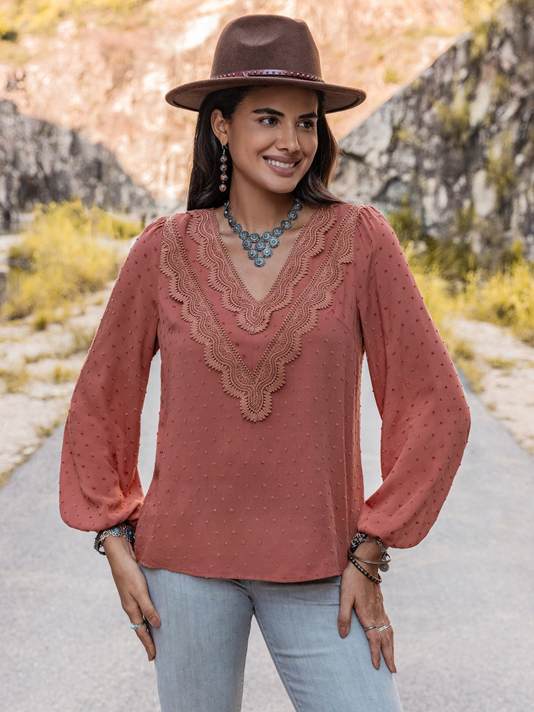 Swiss Dot V-Neck Blouse