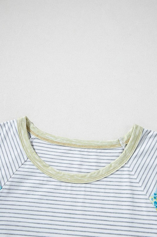 Floral Contrast Stripe Patchwork Raglan Sleeve Tee