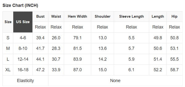 See size chart for approximate measurements