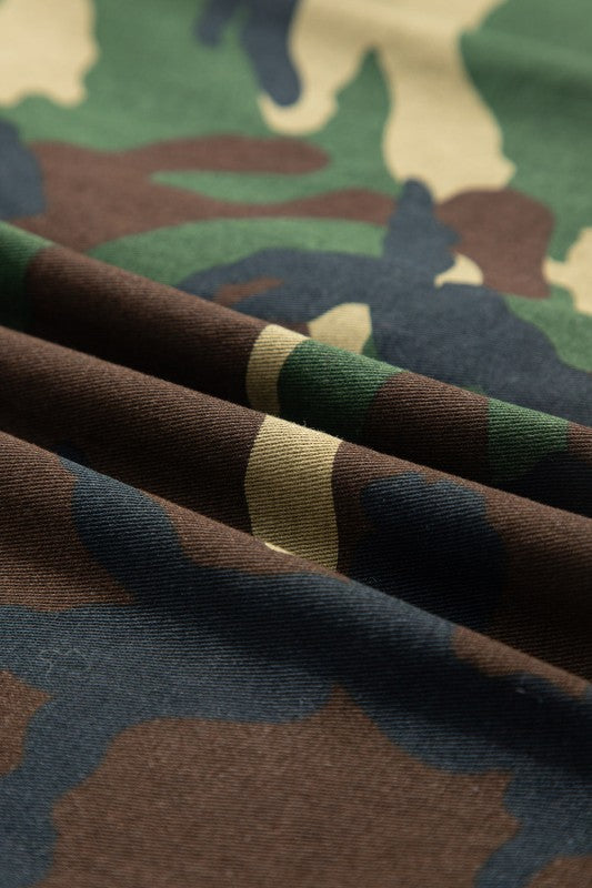 Turn heads in this oversized shacket that pairs leopard print with camo patches for maximum attitude. The genius of this piece? It's a shapeshifter, cozy as a shirt, protective as a jacket, and endlessly versatile for layering. Woven from tough, reliable fabric that stands up to seasonal weather swings, it's your new favorite reach-for layer. Button it up for a polished look or wear it open and loose for that effortlessly cool vibe. One piece, infinite styling possibilities. 100% Cotton