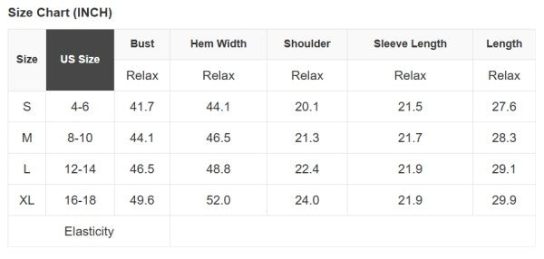 Size Info: See size chart for approximate measurements