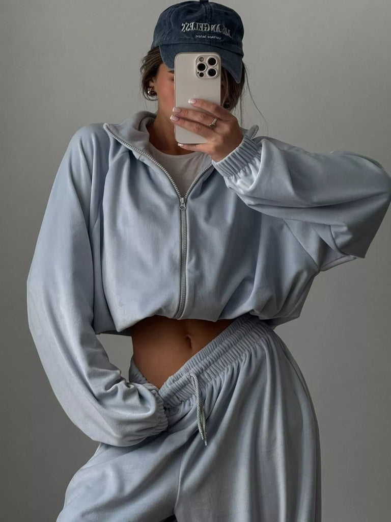 Zip Up Long Sleeve Outerwear and Pants Set